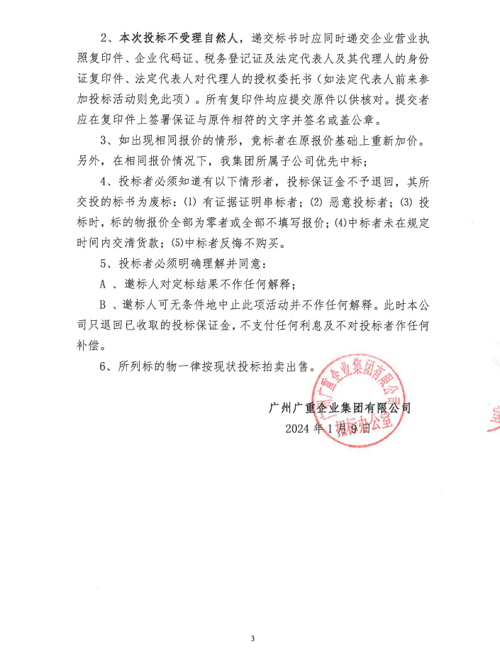 鐘村廢碳鋼A、割渣類等物資處置(廣重資置2024-1號)