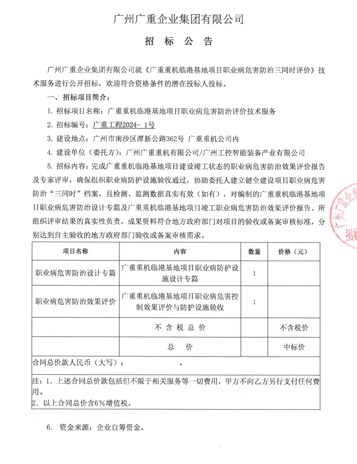 廣重重機(jī)臨港基地項(xiàng)目職業(yè)病危害防治三同時(shí)評(píng)價(jià)技術(shù)服務(wù)項(xiàng)目招標(biāo)公告