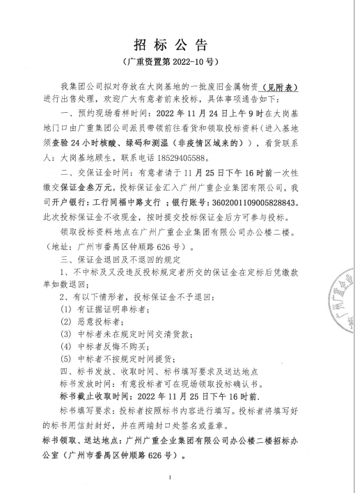 廢舊金屬物資處置(廣重資置2022-10號(hào))
