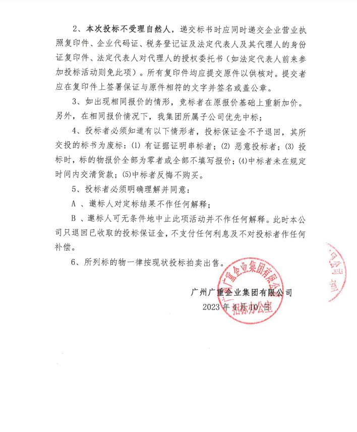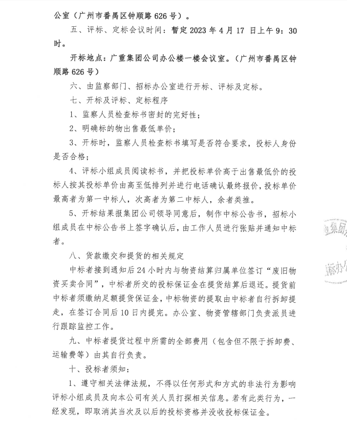 廢舊金屬物資處置(廣重資置2023-2號(hào))